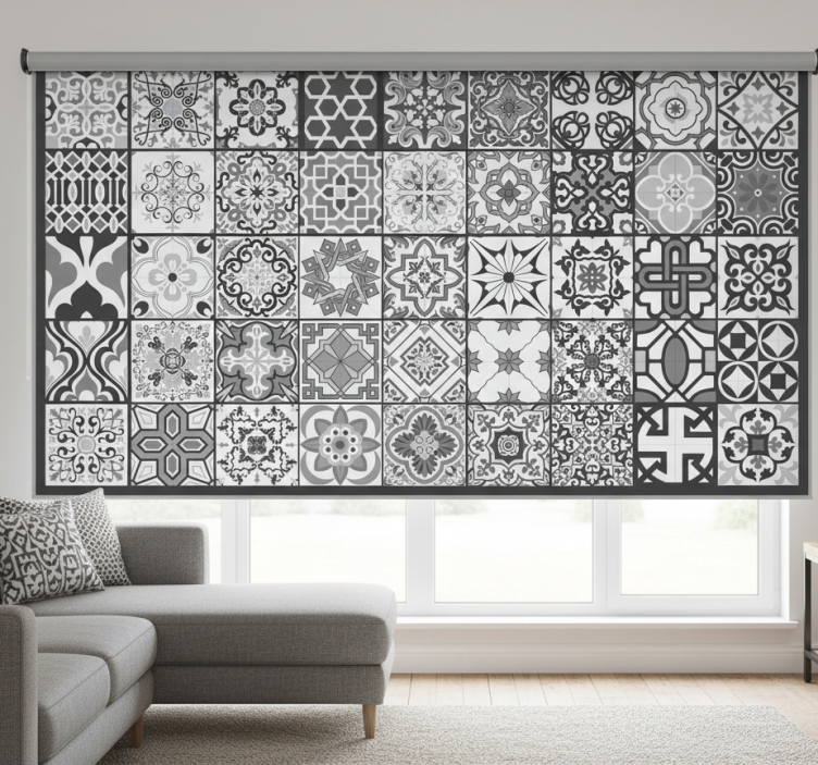 Grå rullegardin mørkegrå rustik mosaikmønster