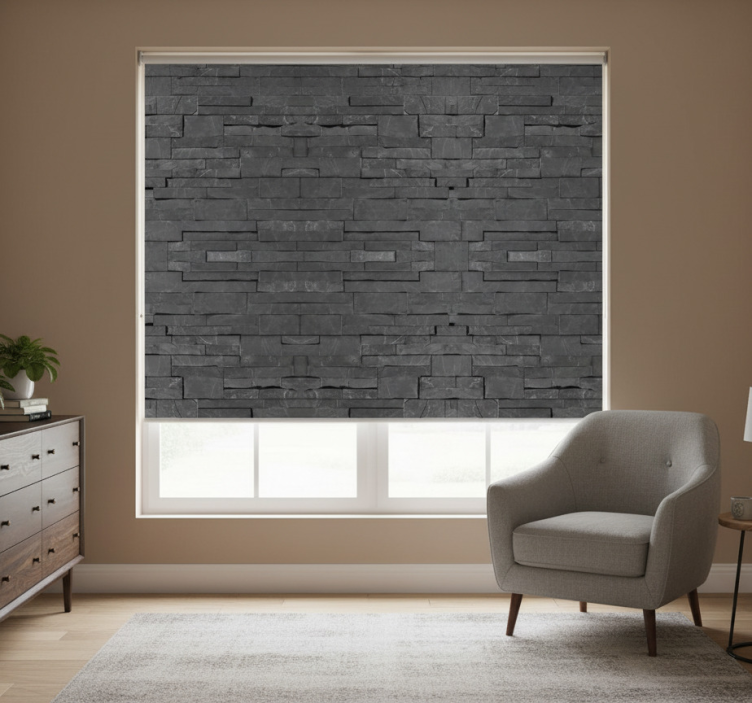 Grå rullegardin sort mursten