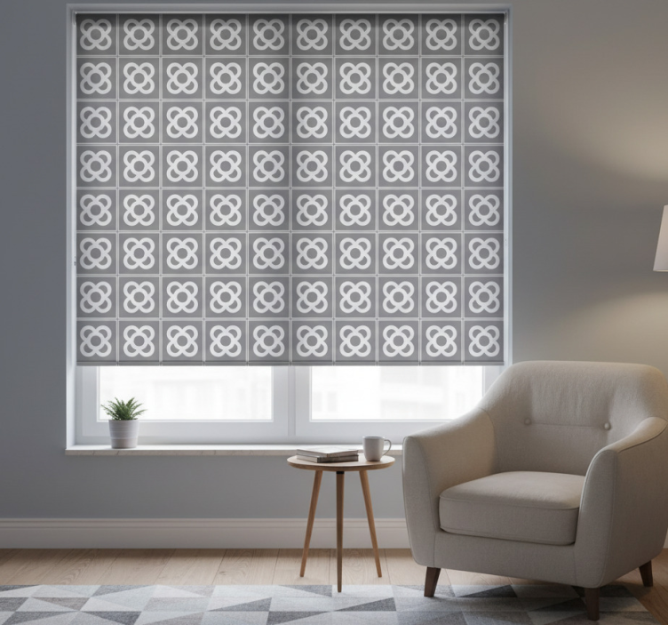 Grå rullegardin med barcelona panot mønster
