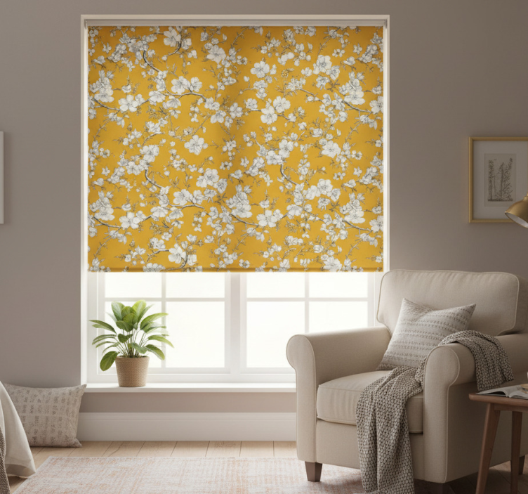 Gule rullegardiner med blomster vintage mønster