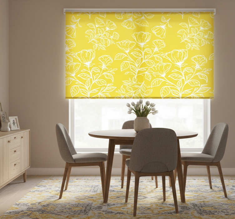 Gule rullegardiner med blomsterdesign