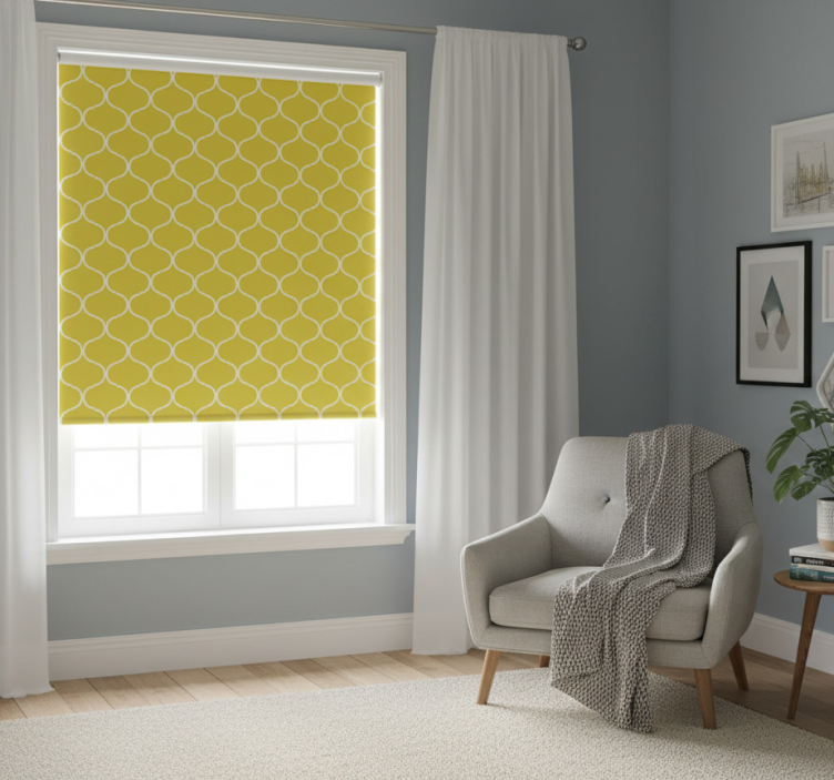 Reference: E8758Gule rullegardiner med geometrisk linjemønster