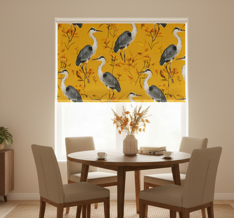 Reference: E8211Velkommen til vores fantastiske gule rullegardiner med hejres mønster, der vil tilføre et unikt og grafisk touch til dit hjem! Dette produkt kombinerer elegance og funktionalitet, da det ikke blot beskytter mod direkte sollys, men også giver dig privatliv, når det sænkes. Vores rullegardiner er lette at rengøre og kan hurtigt adskilles med blot 2 klik, hvilket gør det muligt for dig at holde dine vinduer og omgivelser pæne og rene. Derudover har du mulighed for at vælge mellem 3 forskellige teksturer afhængigt af dit behov for lys og privatliv, hvilket gør hver detalje tilpasset til din smag.