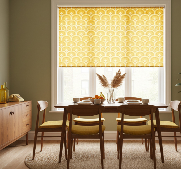 Med gule rullegardiner med retro 70'er gule figurer kan du skabe en unik atmosfære i dit hjem. Disse gule rullegardiner tilføjer liv og farve til enhver indretning, hvilket gør dem til det perfekte valg for dem, der ønsker at udtrykke deres personlige stil. De retro-inspirerede mønstre bringer en følelse af nostalgi, samtidig med at de tilbyder moderne funktionaliteter. Gør dit rum til et sted, der inspirerer og glæder!