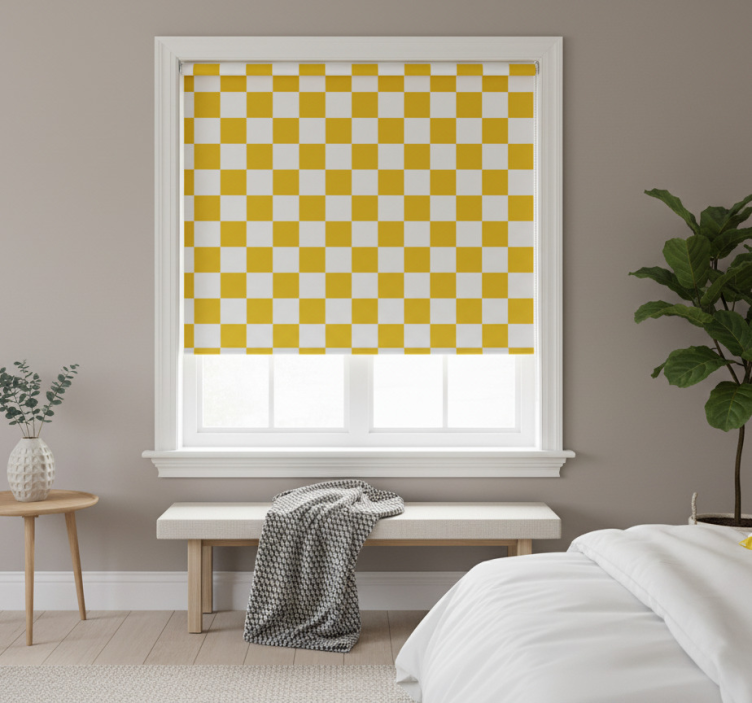 Gule rullegardiner med ternet mønster