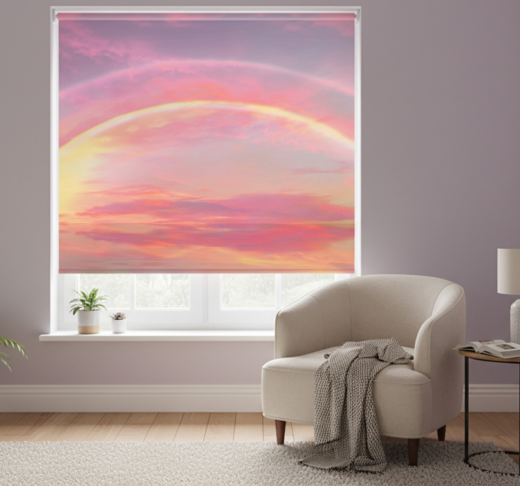 Lyserøde rullegardiner lyserød himmel med regnbue
