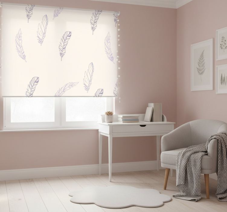 Lyserøde rullegardiner med fjerdesign