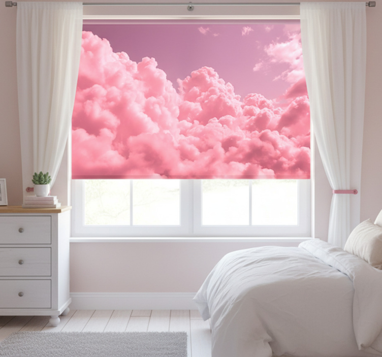 Lyserøde rullegardiner med fluffy skyer