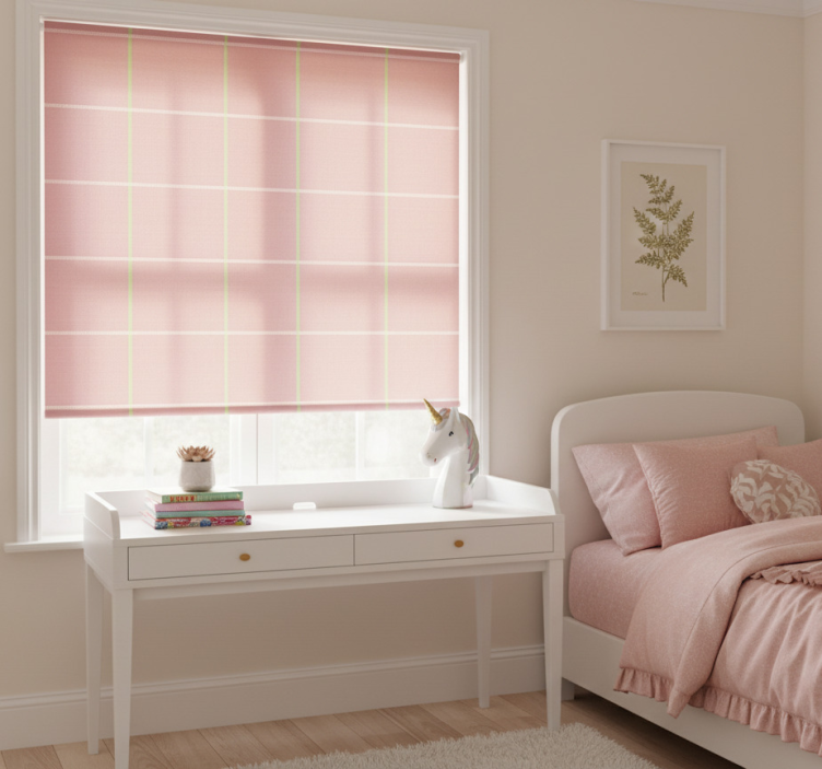 Lyserøde rullegardiner med moderne mønster