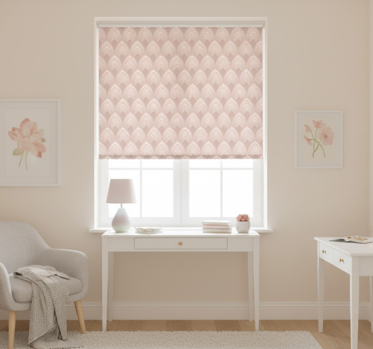 Lyserøde rullegardiner med vintage geometrisk design