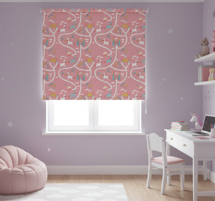 Lyserøde rullegardiner slotte og enhorn