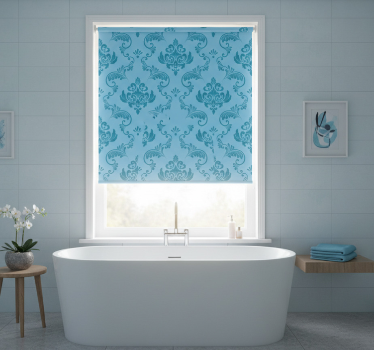 Rullegardin til badeværelse blå botaniske kurver