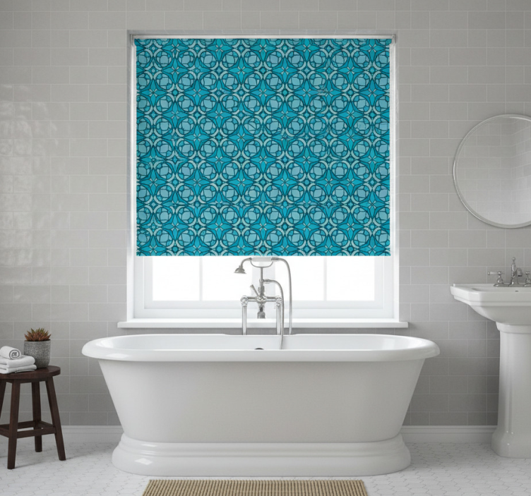 Rullegardin til badeværelse med geometrisk mønster