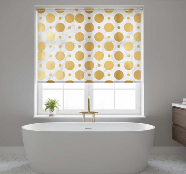 Rullegardin til badeværelse med guld marmor prikker
