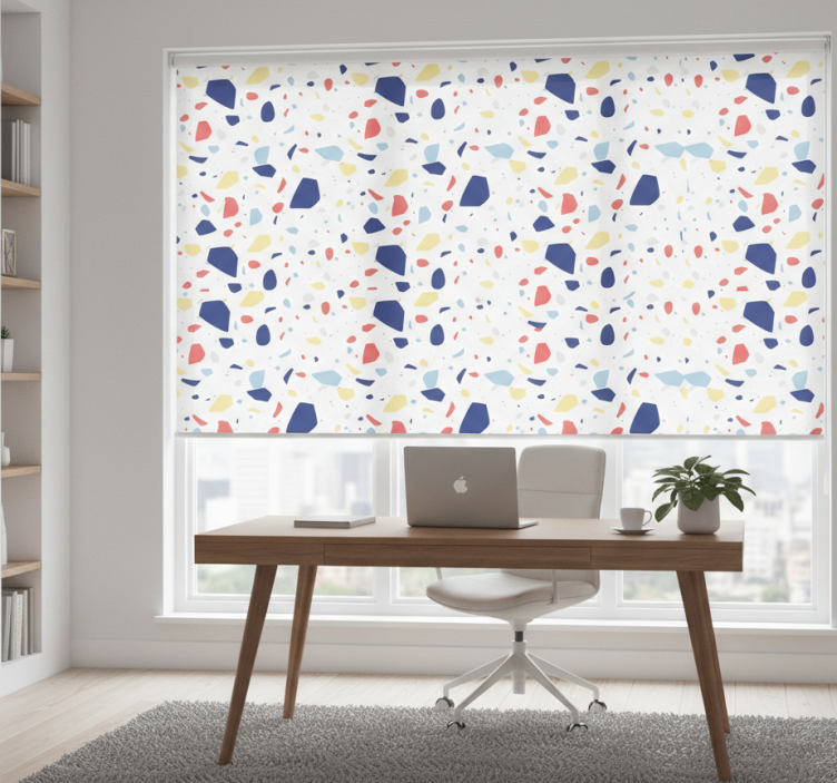 Reference: E6214Oplev det grafiske design med vores Rullegardiner til hjemmekontor elegant terrazzo, som kombinerer funktionalitet med æstetik. Dette rullegardin er ikke kun en skærm mod det blændende lys, men også en stilfuld tilføjelse til dit hjemmekontor. Med nem montering via 2 klik, let rengøring og muligheden for at adskille gardinet hurtigt, er det ideelt til den moderne livsstil. Det beskytter dit rum mod direkte sollys, giver privatliv når det er sænket, og hjælper med at regulere rumtemperaturen. Desuden kan du vælge mellem 3 forskellige teksturer alt efter dit behov for lys og privatliv, hvilket gør det til en perfekt løsning til enhver indretning!