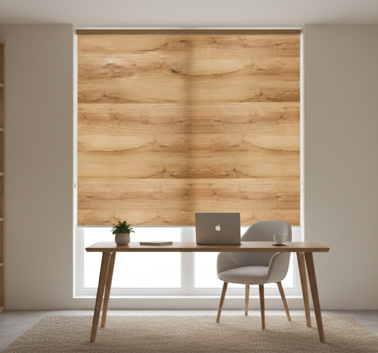 Rullegardiner til hjemmekontor i elegant rustik beige træ