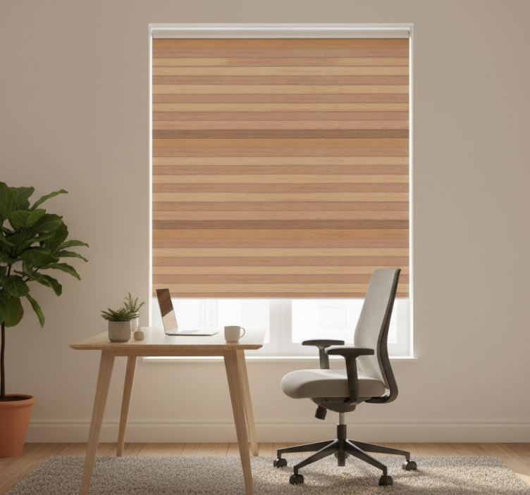 Rullegardiner til hjemmekontor i elegant rustik træ