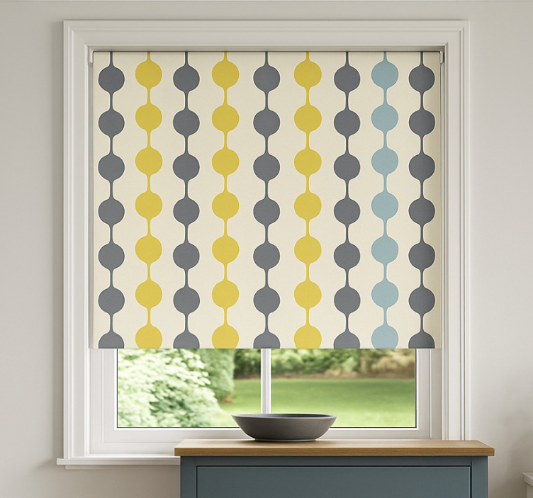 Reference: E6089Oplev det grafiske design med vores Skandinaviske rullegardiner med farverige cirkler, hvor hver detalje er skabt til at forbedre din indretning. Disse rullegardiner kombinerer funktionalitet med æstetik gennem let rengøring, nem montering med 2 klik, og muligheden for at regulere rumtemperaturen. Med sin unikke evne til at beskytte mod direkte sollys og give privatliv, når den er sænket, vil disse gardiner blive et uundgåeligt element i dit hjem!