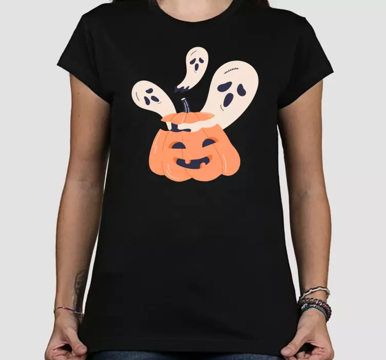 Reference: T4756Dette livlige design har et muntert græskar med legesyge spøgelser, der kommer frem fra det, hvilket fremkalder en let og glad Halloween-ånd. De farverige elementer er ideelle for alle, der ønsker at fejre sæsonen med et strejf af sjov og fantasi.