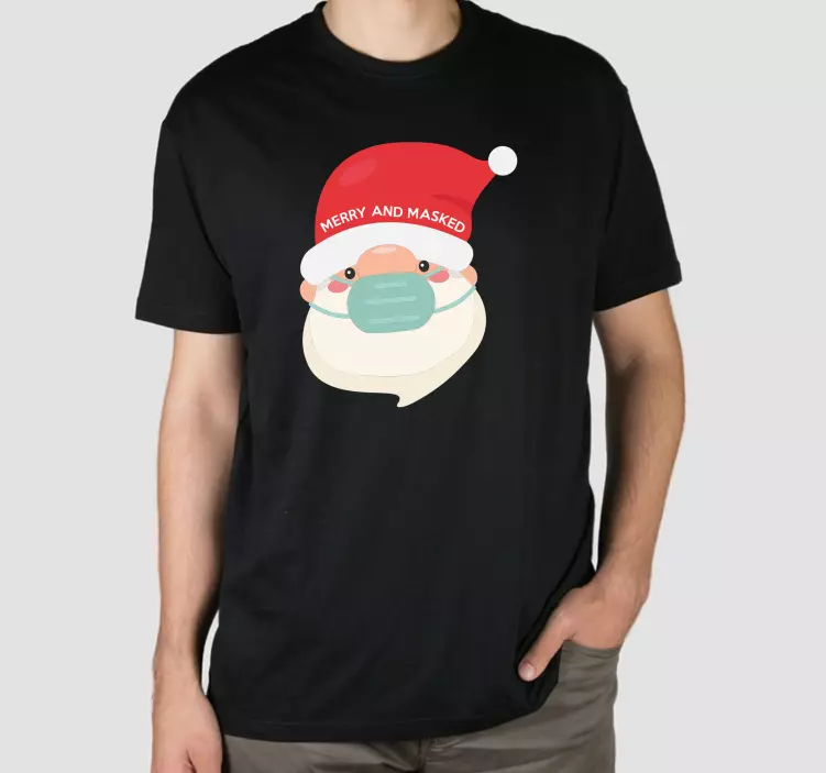 Oplev den jule t shirt med glad julemand maske, der bringer en festlig og lystig stemning til enhver julefejring! Denne t-shirt prydes af et grafisk design, der illustrerer en julemanden iført en sjov ansigtsmaske. Den er perfekt til alle, der ønsker at fejre ferie med stil og humor. Uanset om du skal til en festlig sammenkomst eller bare vil sprede lidt sjov i hverdagen, er denne t-shirt et must-have.