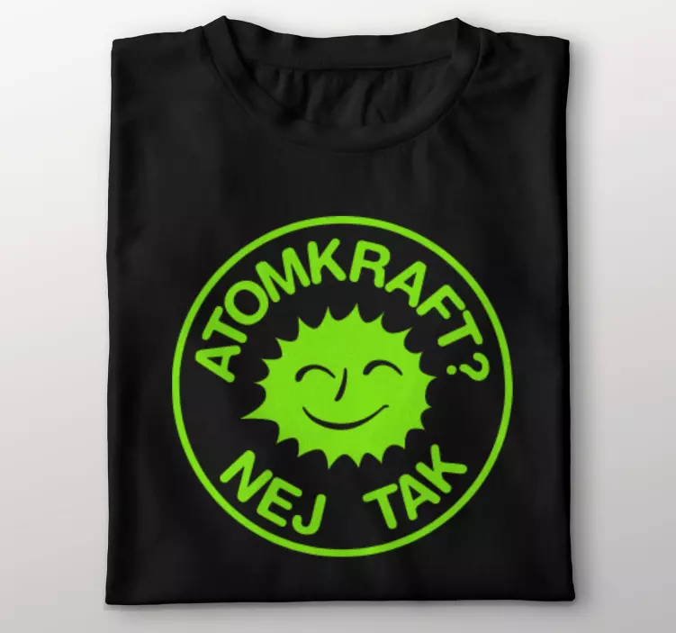 Nej til atomkraft grøn tegneserie smilende atomskjorte