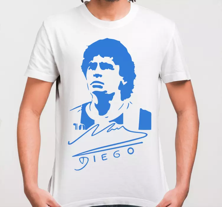 Opdag vores Original t-shirt klassisk sports hyldest, der præsenterer et inspirerende grafisk design. Denne t-shirt hylder den argentinske fodboldverden med en stilfuld silhuet af en fodboldspiller, der fanger essensen af sportens passion. Det monofarvede design, der kombinerer hvid og blå, giver et ikonisk udtryk, mens den nostalgiske underskrift tilføjer et personligt præg. En perfekt kombination af stil og homage til en stor sport!