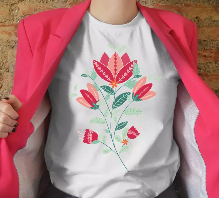 Vores Original t-shirt med blomsterarrangement er ikke bare en t-shirt; den er et udtryk for din stil og personlighed. Den unikke kombination af farver og det håndtegnede design gør den til et must-have i enhver garderobe. Når du ifører dig denne original t-shirt, vil du føle dig forbundet med naturen og samtidig udstråle en uforglemmelig charme. Den er perfekt til både hverdag og fest, og du vil helt sikkert få komplimenter fra venner og familie!