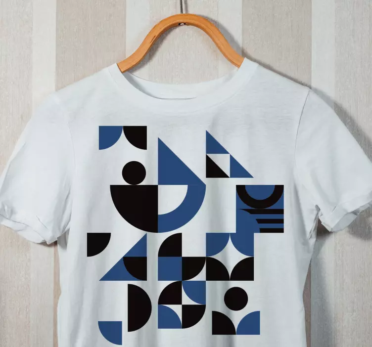 Oplev den unikke original t-shirt med geometrisk mønster, der byder på et grafisk design, som kombinerer geometri og abstrakte former i en stilfuld illustration. Denne t-shirt præsenterer et moderne udtryk med sit elegante mønster i blå og sort, hvilket gør den til et must-have for enhver modebevidst person. Gå på opdagelse i dette geometriske univers og lad dine outfits stråle med kreativitet og flair!