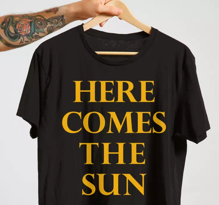 Oplev den unikke Original t-shirt solens komme, der bringer en moderne stil med et grafisk design, der inkluderer inspirerende sangtekster og et motiverende solmotiv. Denne stilfulde t-shirt i sort og gul er designet til musikelskere og musikere, der ønsker at fremhæve deres passion for musik og livets positive vibes!