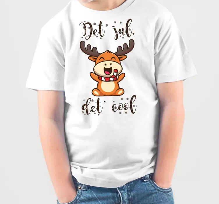 Denne super søde og fede sin jul sin fede t-shirt er lige hvad du skal bruge til jul. Den består af et dansk citat, der siger 'det er jul, det er cool', fra den berømte danske julesang, der bringer så meget glæde. Desuden er der en sød og glad hjort. Køb denne det jul det er fede t-shirt og få en speciel og unik juledekoration og et rigtig sjovt minde. Spred noget juleglæde med denne super sjove det jul det er fede t-shirt. Vælg den størrelse, du har brug for, og tilføj den til din indkøbskurv.