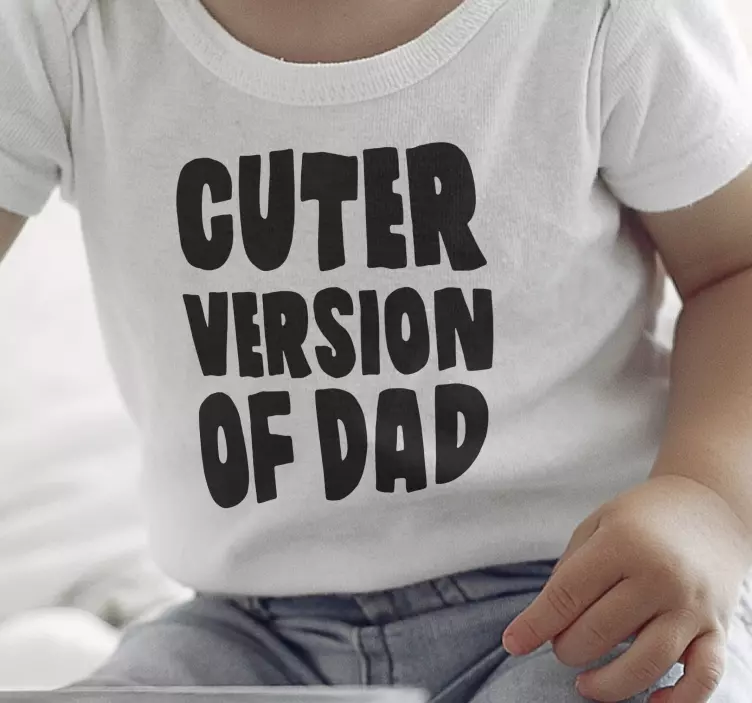 Reference: T5401Dette legende design har fed, stiliseret tekst, der siger 'Cuter Version of Dad.' Den sorte skrift står i kontrast til en lys baggrund, hvilket skaber et sjovt og engagerende look til et barns outfit. Ideelt til at fejre familiære bånd med et humoristisk twist.
