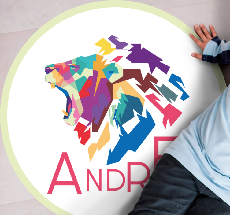 Farverig løve personalisering vinyl tæppe med navn er et grafisk design med en smuk polyangulær løve og farverige detaljer, der kan tilpasses med et personligt navn.