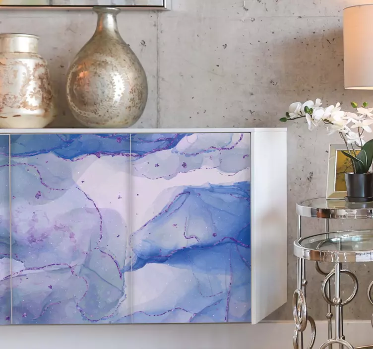 Velkommen til verdenen af kreativitet med vores abstrakt klistermærke i flydende blå mønster, hvor grafisk design møder kunstneriske udtryk. Dette klistermærke kombinerer en smuk blå farve med en malerisk, flydende struktur, der bringer liv til ethvert rum. Den farverige udformning skaber en visuel oplevelse, der forvandler dine møbler til unikke kunstværker og tilføjer et strejf af elegance til din indretning.