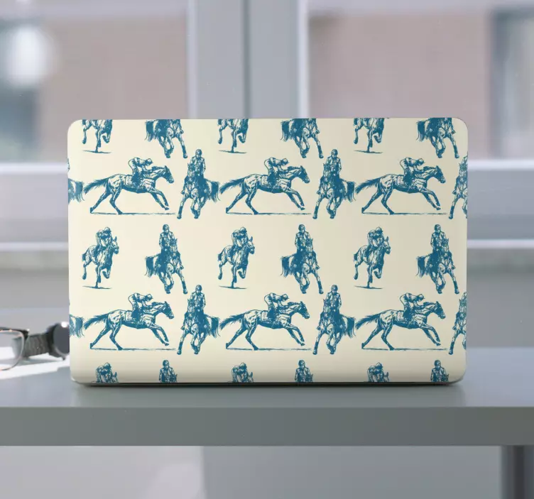 Blå og beige hestemønster laptop klistermærke