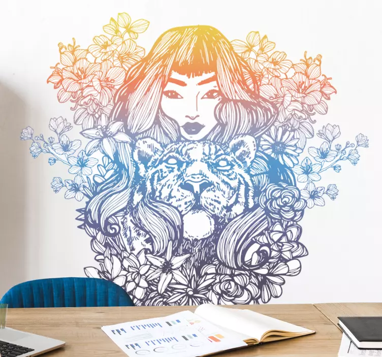 Blomst keltisk kvinde gradient farve vinyl væg kunst