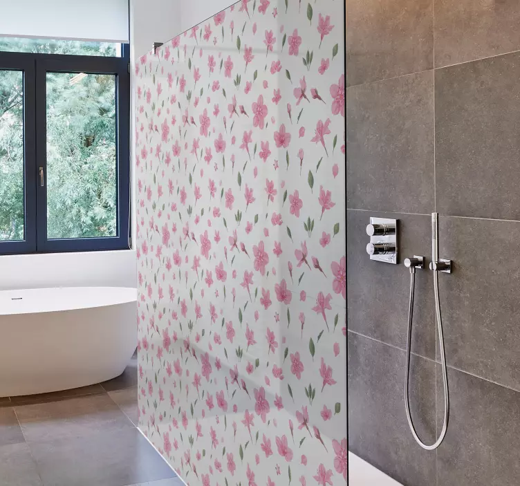Oplev vores bruse klistermærke botanisk element generation, der bringer naturens skønhed ind i dit badeværelse! Designet er grafisk inspireret af akvarel, med en lyserød, blomstret mønster, der skaber en harmonisk atmosfære. Med dette klistermærke kan du skabe en unik bruseroplevelse, der fremhæver de smukke blomster og naturens elementer.