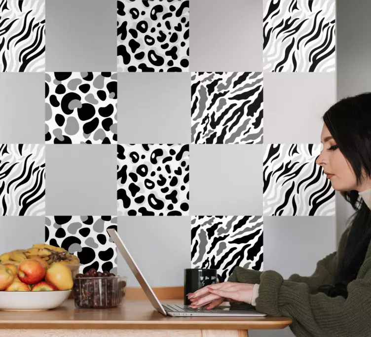 Oplev skønheden i vores dekoration klistermærker elegant mønstrede fliser, hvor grafisk design møder moderne æstetik. Med et udvalg af fliser, leopard- og dyreprint, samt monokrome og abstrakte strukturer, tilbyder vi en unik mulighed for at forvandle ethvert rum. Vores geometriske mønstre tilføjer et moderne præg, der vil imponere dine gæster!