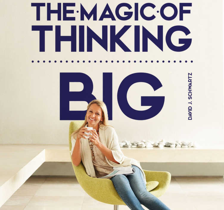 Dette motiverende citat vægklistermærke er fantastisk til at give dig en daglig påmindelse om, at du kan opnå alt, hvad du ønsker. Citatet stammer fra bogen 'Magien ved at tænke stort' af David J. Schwartz, som er en inspirerende læsning for enhver, der ønsker at tage kontrol over sit liv.
