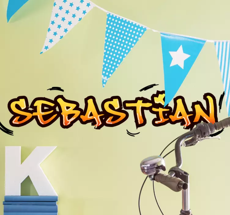 Et farverigt navneskilt tilpasses klistermærke er ikke bare en dekorativ genstand; det er en måde at udtrykke din personlighed på! Det tilføjer karakter til ethvert rum og fungerer som en fantastisk samtalestarter. Uanset om det er til børneværelset, kontoret eller et kreativt rum, vil dette klistermærke inspirere og glæde. Dets grafiske design med elementer fra graffiti og urban kunst skaber en dynamisk atmosfære, der inviterer til kreativitet og leg.