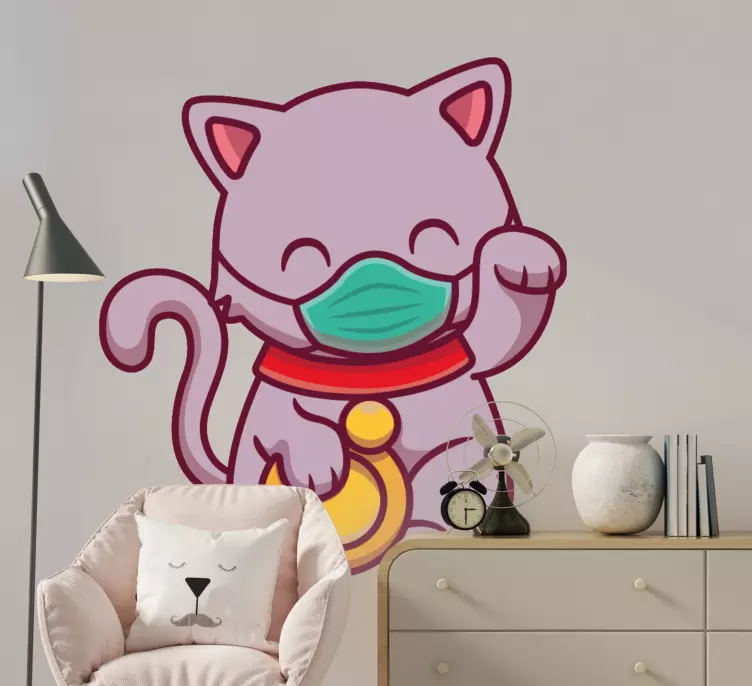 Reference: A48967En glad kat er afbildet iført en beskyttelsesmaske, hvilket fremhæver dens legende karakter. Designet understreger kattens livlige farver og runde træk, hvilket giver et eventyrligt præg. Denne fremstilling betoner glæde og modstandskraft i udfordrende tider og indfanger en let hjertet stemning.