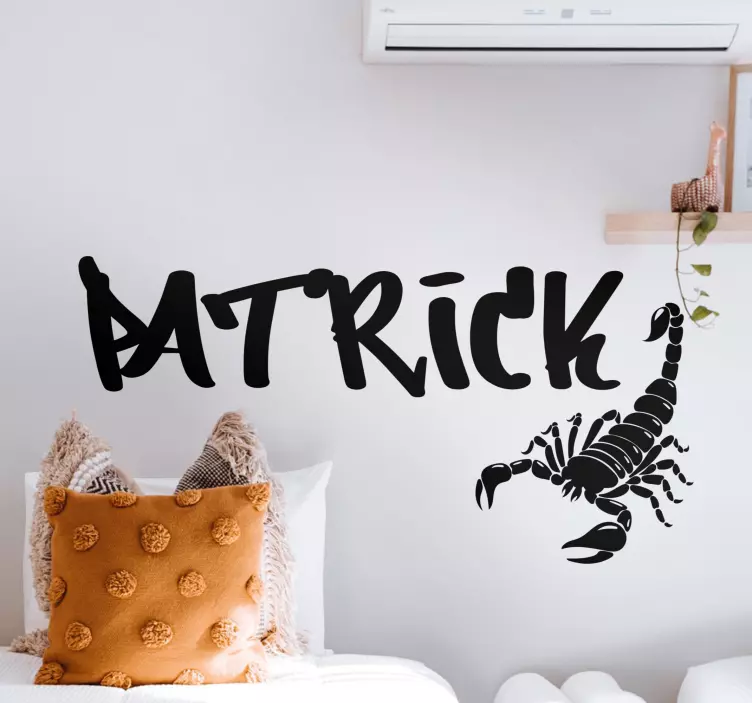Reference: A49594Et iøjnefaldende tilpasseligt design med en dristig skorpion ved siden af et iøjnefaldende navn. Dette design kombinerer både personlighed og symbolik, hvilket skaber en unik erklæring i ethvert rum. Perfekt til dem, der ønsker at tilføje et strejf af individualitet til deres omgivelser.