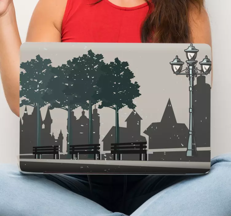 Oplev vores klistermærke til bærbar urban park scene, som bringer en nostalgisk følelse fra 70'erne med grafiske silhuetter af lygtepæle, parker og gader. Dette unikke design skildrer et livligt bybillede med træer, bænke og lygtepæle, hvilket gør det til en perfekt tilføjelse til dit bærbare udstyr. Med dette klistermærke kan du tilføre et strejf af liv og farver til din hverdag!