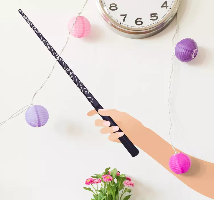 Reference: A47302En fantasifuld fremstilling af en tryllestav holdt i en hånd, prydet med indviklede mønstre. Denne legende billedsprog indfanger essensen af fantasi og undren, perfekt til at inspirere kreativitet i børns rum.