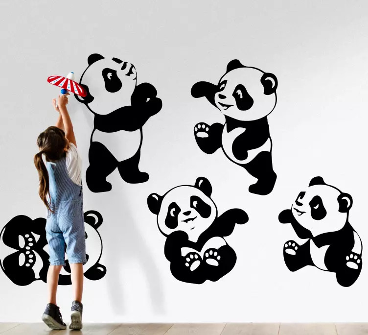 Reference: A48530En legesyg sammensætning med forskellige panda-figurer i charmerende positurer. Designet fremhæver uskylden og glæden ved barndommen, hvilket gør det perfekt til et børneværelse. Hver panda udstråler en følelse af sjov og eventyr, hvilket opmuntrer til fantasi og kreativitet.