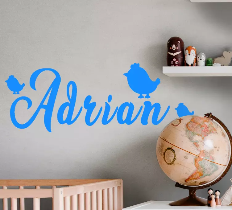 Klistermærke til børn med personligt navn og fugle