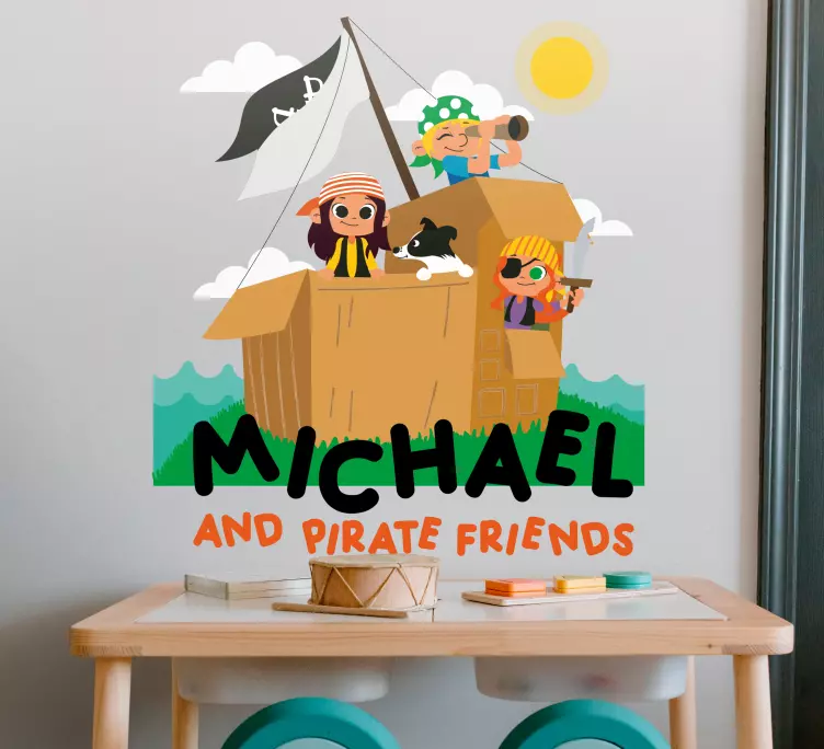 Oplev et fantastisk klistermærke til børn piratskib eventyrscene, der bringer liv til børneværelset! Designet er skabt med farverige og legende elementer, der inkluderer børn, piratskib, venner og pirater. Med muligheden for at tilpasse med dit barns navn gør dette produkt til det perfekte valg for at skabe en personlig og sjov atmosfære. Det tegneserie-inspirerede design inviterer til eventyr og leg, og vil helt sikkert blive et hit hos de små!