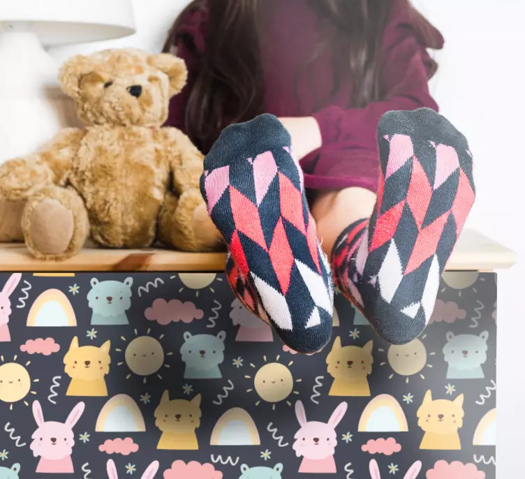 Oplev vores klistermærke til børn søde væsner stilarter, der med sit grafiske design bringer en verden af dyr, regnbuer og farverige tegneserie figurer ind i dit hjem! Dette klistermærke er perfekt til at skabe en sjov og legende atmosfære, hvor børn kan udforske deres fantasi. De finurlige mønstre og tegn vil glæde både store og små, og bringe liv til ethvert rum.