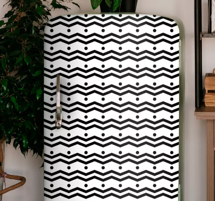 Opdag det stilfulde Køleskab klistermærke zigzag mønster overlay, der bringer et moderne og grafisk touch til dit hjem. Med sit sort-hvide zigzag design og geometriske linjer tilfører dette klistermærke en unik æstetik, der vil forvandle dit køleskab til et sandt blikfang. Den monokrome farvepalet giver et elegant udtryk, der passer perfekt ind i enhver indretning.