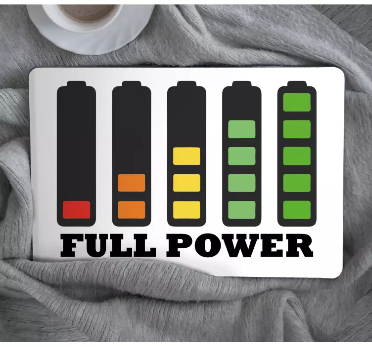 Vores Laptop klistermærke med effekt niveau indikatorer er ikke bare en dekorativ tilføjelse, men også en praktisk løsning til at holde styr på din bærbares batteristatus! Det inspirerer til en energifyldt arbejdsplads, hvor du konstant kan holde øje med, hvornår det er tid til at oplade. Giv din bærbare computer et personligt præg, der ikke blot ser godt ud, men også hjælper dig i din dagligdag!