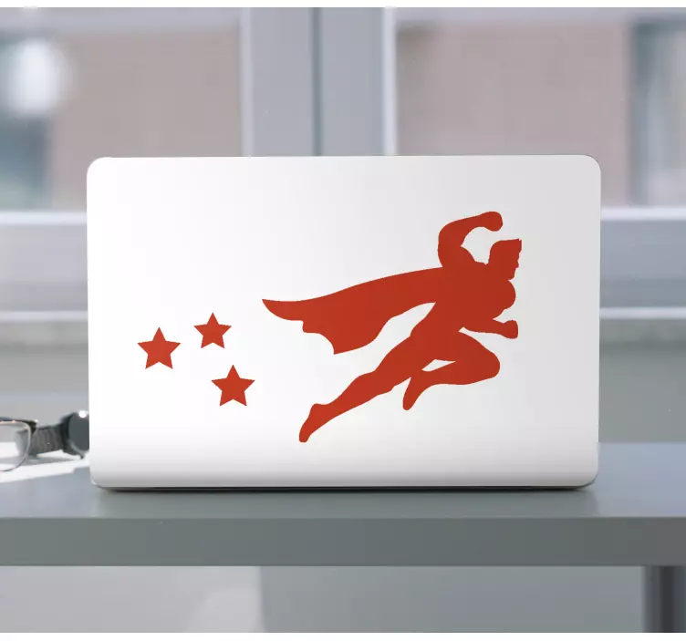 Oplev vores fantastiske Laptop klistermærke superhelte flyvende stjerner, der bringer liv og fantasi til din bærbare computer! Dette grafiske design præsenterer en superhelt i en flyvende silhuet, omgivet af stjerner og dynamiske tegneserie-elementer, der fanger handlingen med en imponerende kappe. Det er et perfekt valg for alle, der ønsker at give deres laptop et unikt og energisk udtryk!